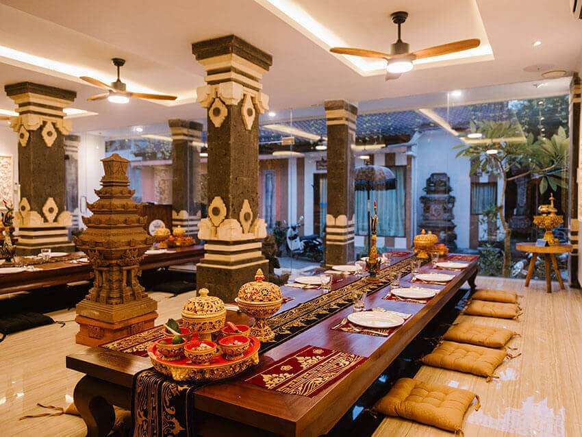 Dapur Raja is located on Goutama Selatan street, next to the Golden Monkey Chinese Restaurant Ubud Bali. Serving a Balinese rijsttafel plate featuring 8 local delicacies including babi guling, ikan pepes and bebek betutu for the main course and finishes with dessert.